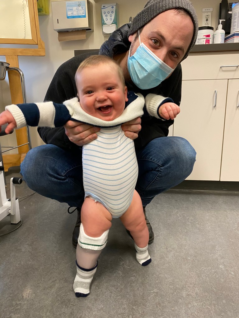Somehow, gradually, these images changed and gave way to new ones as the weeks passed following his surgery. Ones that were lighter, and a whole lot less scary. We watched Miles, at 10 months old, begin to stand with his prosthesis and even jump in his bouncy chair. We watched him play completely unbothered by his new leg. I started to picture Miles as a kindergartener, running with his classmates in the field at school. As a bigger kid riding his bike, totally unencumbered by his prosthesis. And as an adult, proudly staring down at us from a podium.